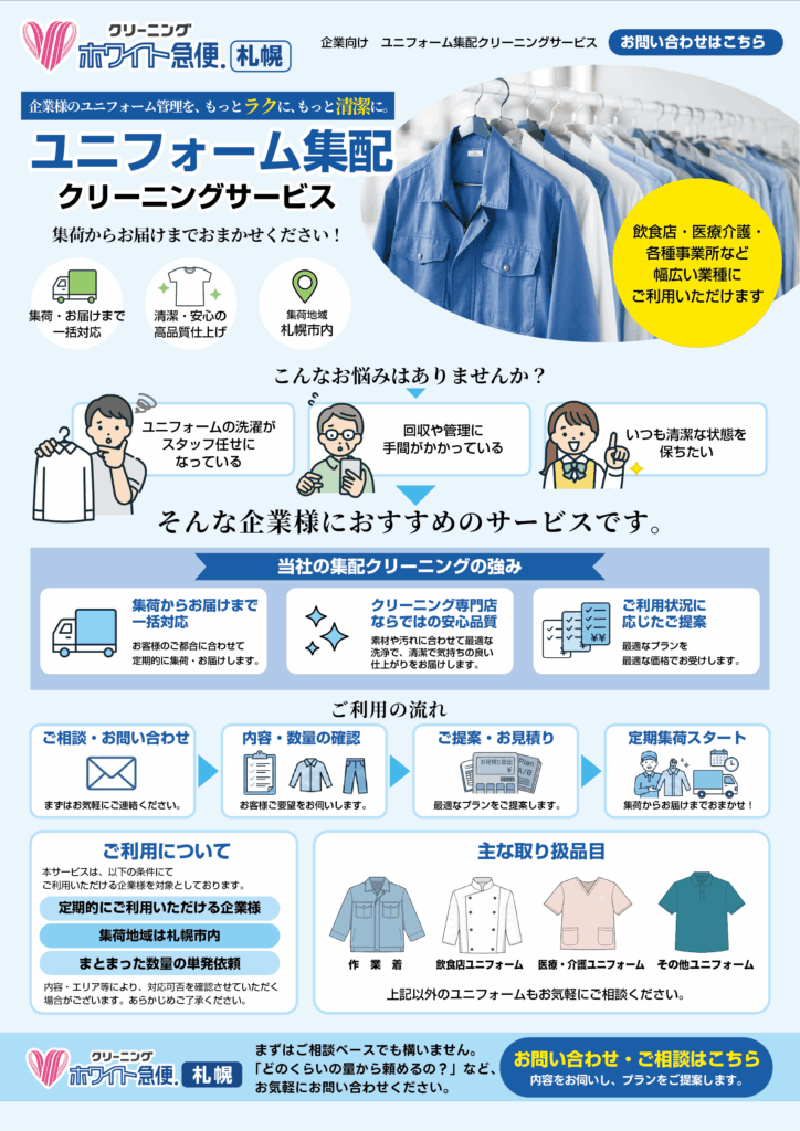 【札幌】企業さま向け ユニフォーム集配クリーニングサービス
