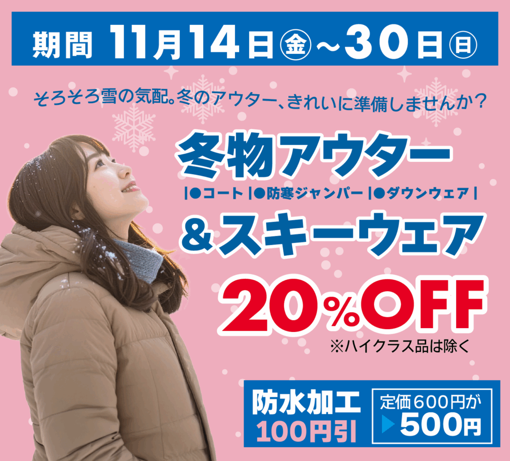 • 防寒ジャンパー・スキーウェアも対象→20%OFF