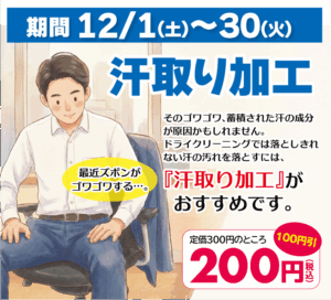 :【汗取り加工】ドライクリーニングでは落としきれない水溶性の汚れを落とします