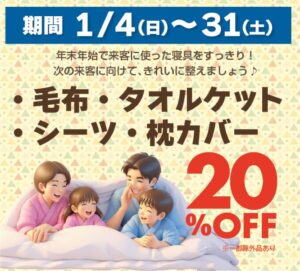 🔴新春セール1/4(日)~1/12(月)          🔵寝具20%OFF1/4(日)~1/31(土)
