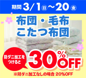 🔴防ダニ加工をプラスして安心でお得に(^▽^)/  🔵対象店舗限定セール