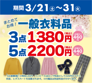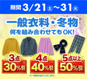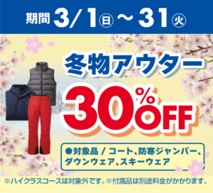 ※3月は各店舗で内容が異なるセールを実施しています。ご来店予定の店舗へお問い合わせください。
