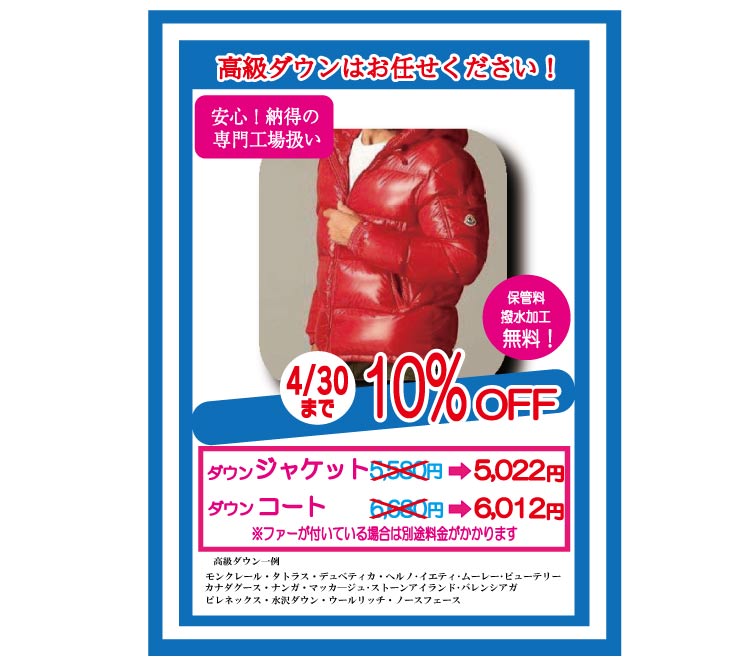 お気に入りの高級ダウンも専門工場洗いの当社にお任せください!